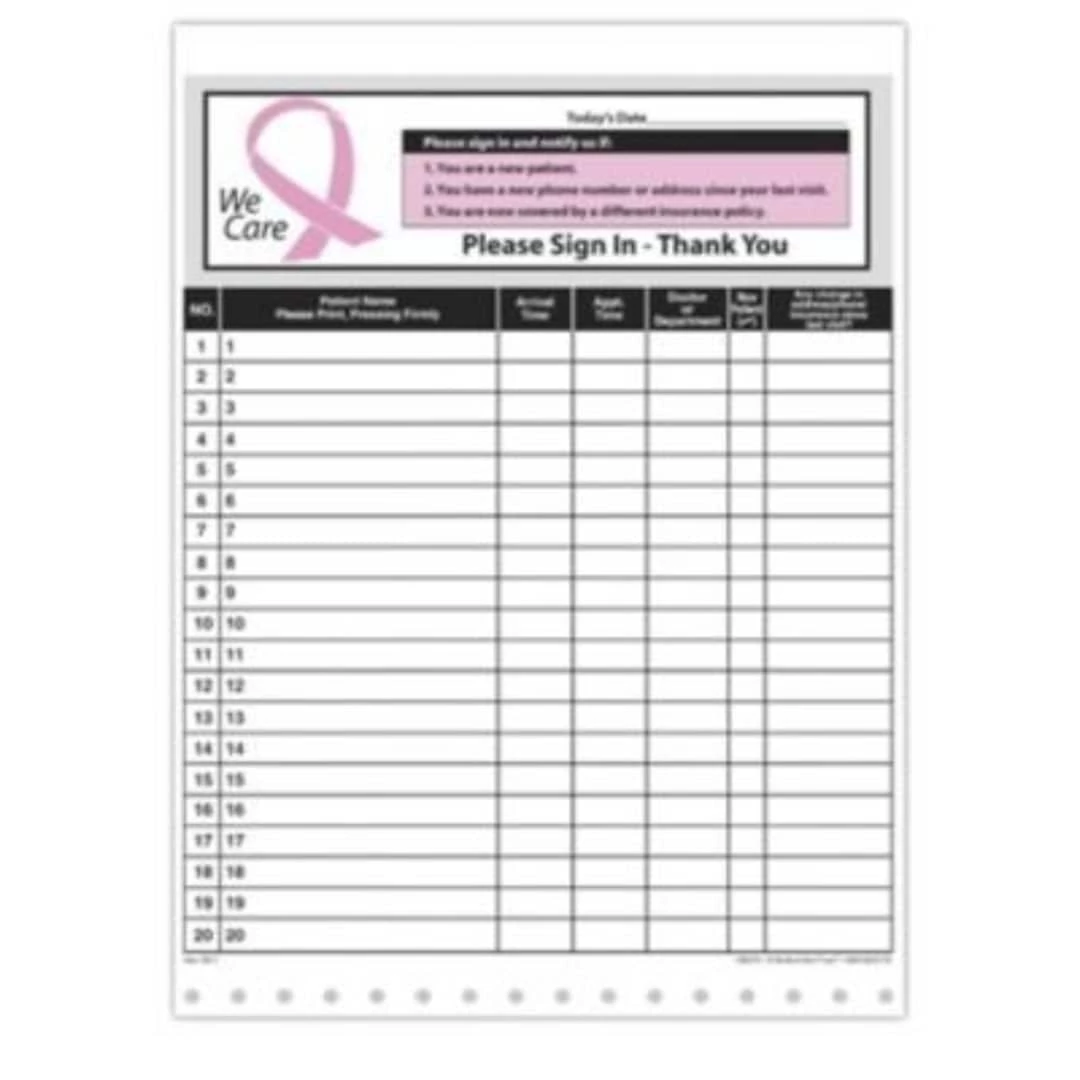 Medical Arts Press Designer Privacy Pink Ribbon Sign In Sheets require filling details such as patient’s name, appointment time and doctor’s name. They are useful for keeping patients’ medical records.