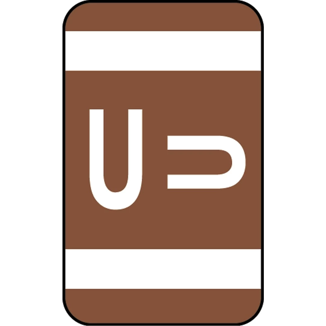 Compatible with Smead® Alpha-Z® labels – same design, same color – but you pay less! Labels are scored and self-adhesive with clear laminate finish. 100 Dk. Brown “U” labels per package (10 sheets of 10 labels each). Size: 1″W x 1-5/8″H before folding.