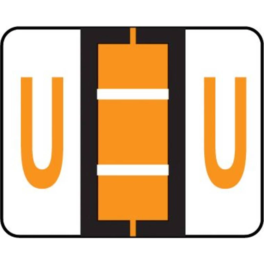 Compatible with TAB® Products labels – same design, same color – but you pay less! Labels are scored and self-adhesive with clear laminate finish. 500 Lt. Orange “U” labels per roll in a self-dispensing box. Label size: 1-1/4″W x 1″H before folding.