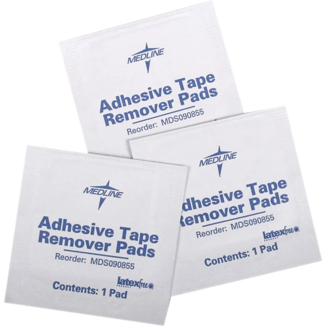 Adhesive remover pads are alcohol-free, textured. Individually wrapped.