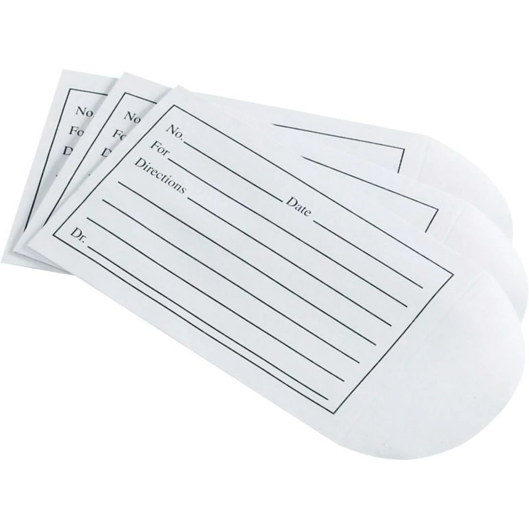Medication envelope lines on front to indicate room, date, name, directions, and physician.