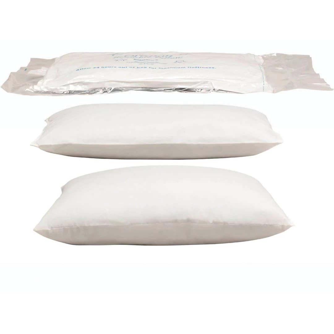 Pillows have a hypo-allergenic ticking, and they feature a soft, quiet feel just like your pillows at home, come vacuum-packed similar to the Nylex Ultra, Please allow up to 4 hours to fully expand