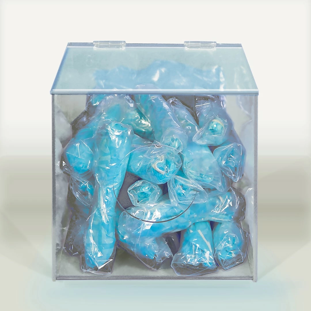 Store a wide range of PPE supplies such as bouffants, booties, gloves, earplugs, etc.