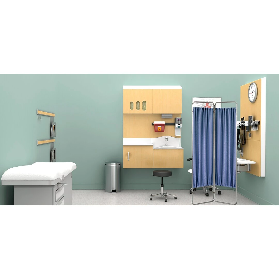 Omnimed economy privacy screens are made of a durable, lightweight and easy to clean anodized aluminum. The 2 sections of the screen are attached to each other by a riveted hinge which allows the frame to smoothly fold and unfold as needed. Screen panels are secured to the frame by top and bottom snap in rods. The unit measures 68H x 27W and has a 5 year warranty. Two flame resistant cloth panels are included with the frame and provides an attractive solution to increase patient privacy and environment aesthetics. Panels are 52L x 27W and are machine washable.