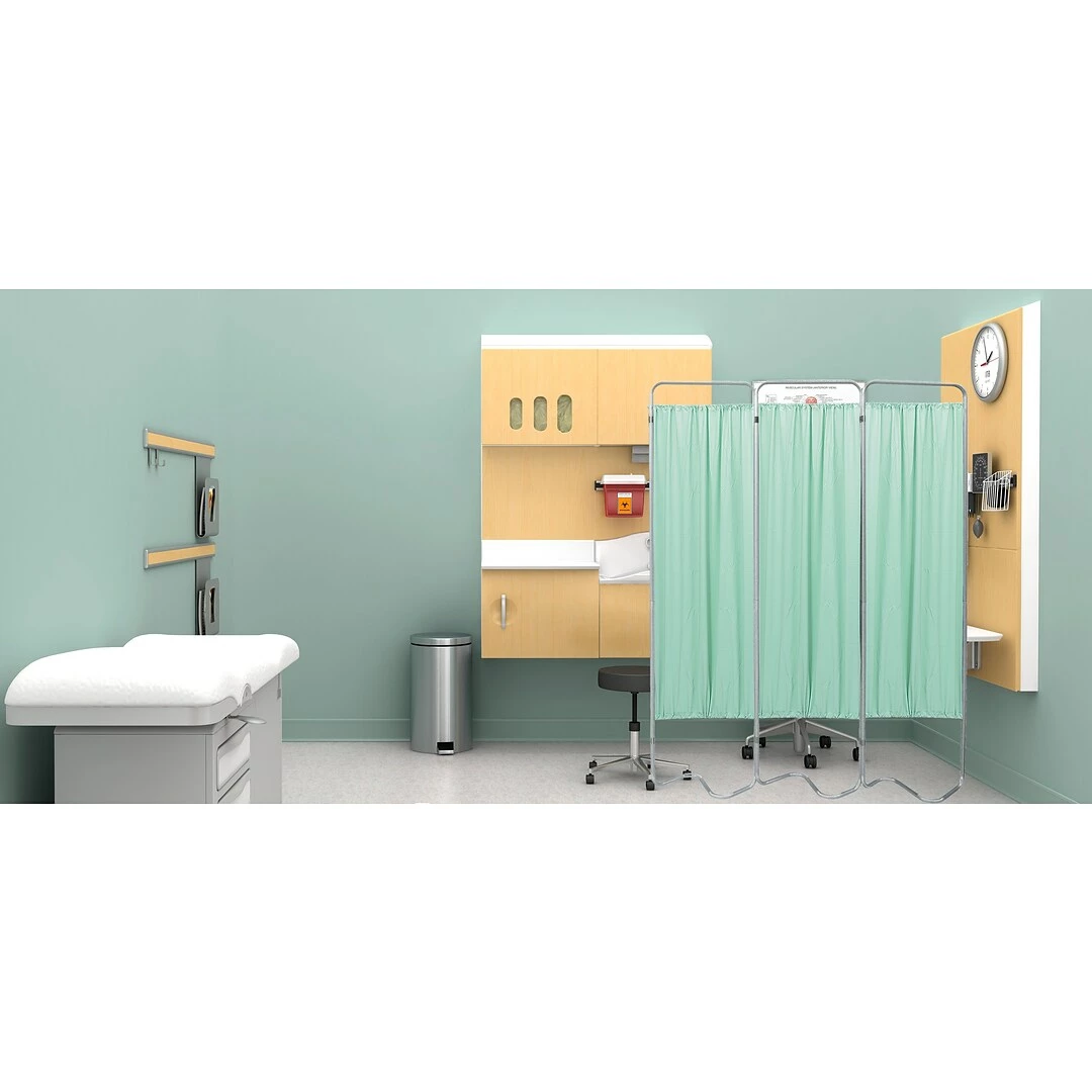 Omnimed Beamatic Privacy Screens are made of a durable, lightweight and easy to clean anodized aluminum. The 3 sections of the screen are attached to each other by a riveted hinge which allows the frame to smoothly fold and unfold as needed. Equipped with an S-shaped base, this screen has exceptional stability for use in busy environments. Screen panels are secured to the frame by top and bottom snap in rods. The unit measures 68H x 55W and has a 5 year warranty. Three heavy gauge, flame resistant white vinyl panels are included with the screen frame. Panels are 52L x 27W and are machine washable.