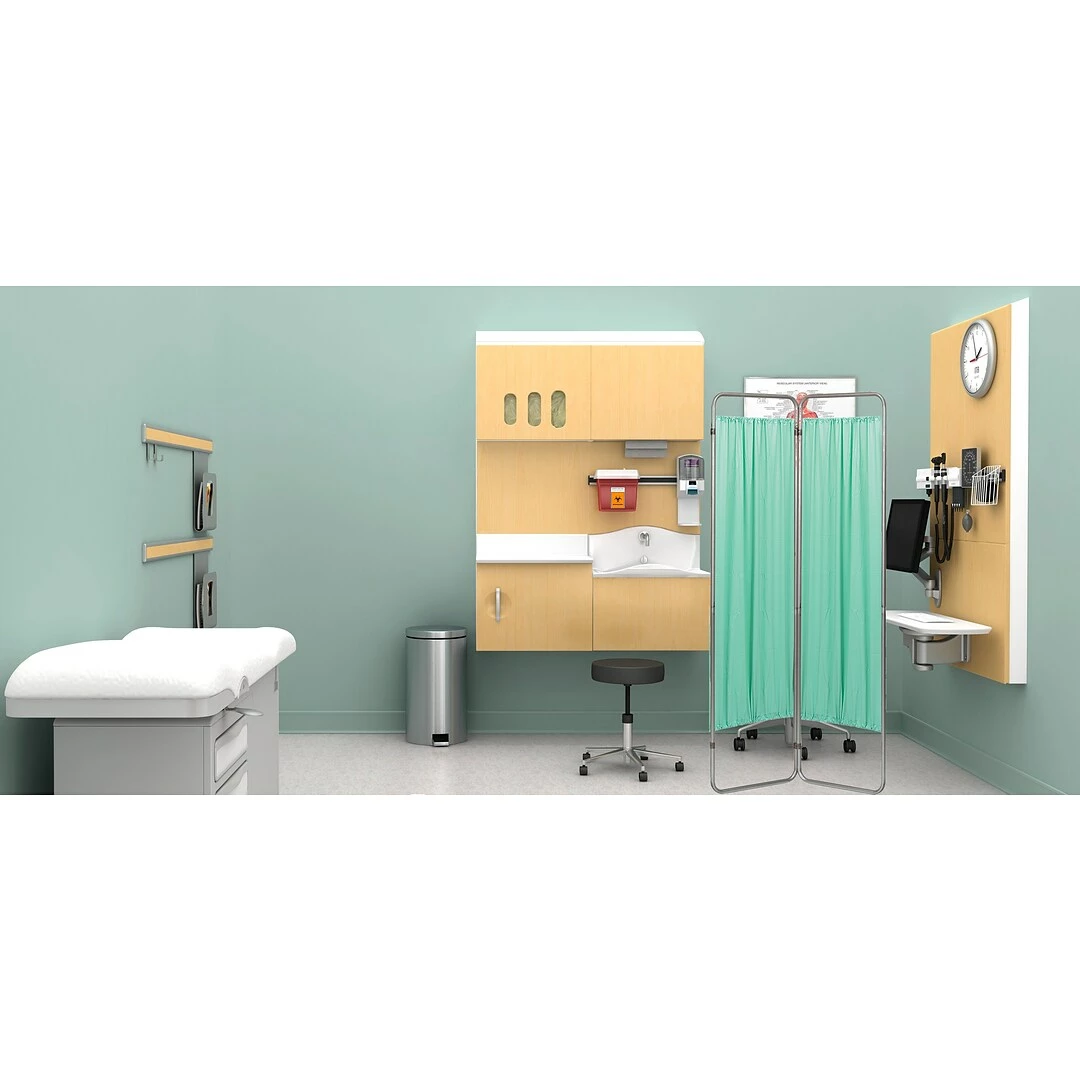 Omnimed economy privacy screens are made of a durable, lightweight and easy to clean anodized aluminum. The 2 sections of the screen are attached to each other by a riveted hinge which allows the frame to smoothly fold and unfold as needed. Screen panels are secured to the frame by top and bottom snap in rods. The unit measures 68H x 27W and has a 5 year warranty. Two flame resistant cloth panels are included with the frame and provides an attractive solution to increase patient privacy and environment aesthetics. Panels are 52L x 27W and are machine washable.
