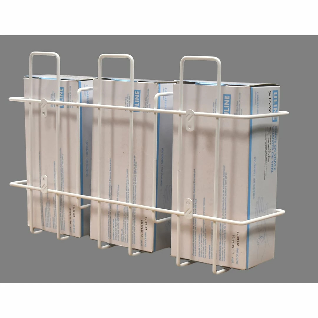 Omnimed Wire Glove Box Holders are constructed of heavy gauge steel wire that is powder coated for a durable and easy to clean finish. They are ideal for use in medical, lab and food prep functions or any area where cross contamination is an issue or protective gloves are needed. These glove box holders are simple to load and accommodate 3 glove boxes that sit side-by-side. Each unit can be mounted horizontally on a variety of surfaces. Dispensers measure 17H x 11 1/2W x 4 1/2D. All single glove boxes fit this model.