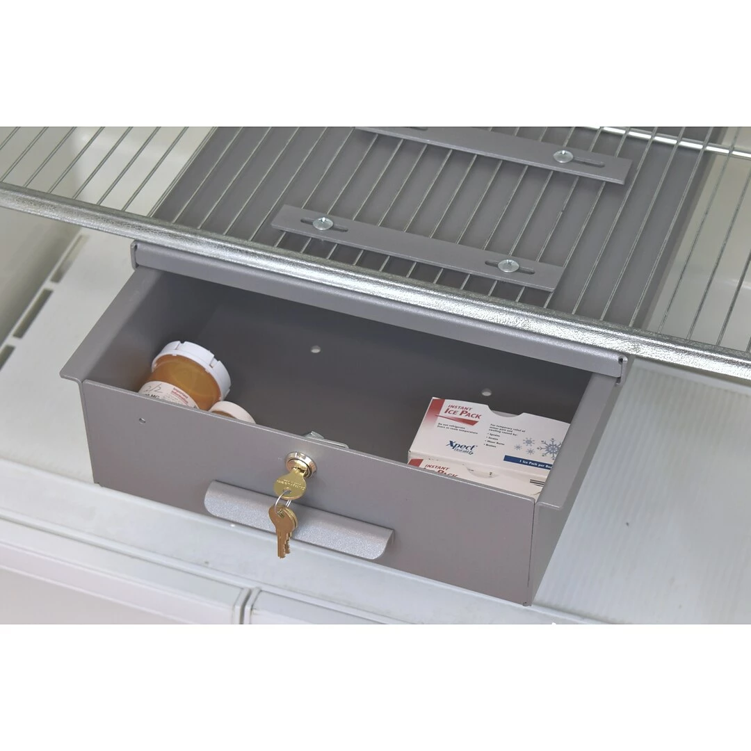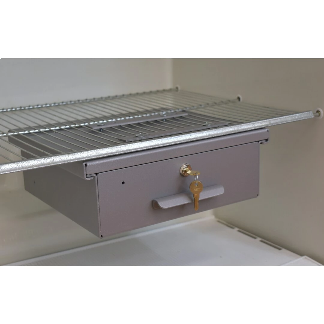 Welcome to our next generation of Omni refrigerator lock Drawers. The durable, cost effective and rust proof drawer insures it will work in all conditions. It is perfect for insulin storage in refrigerators. The 1/8” painted aluminum design provides more robust security than the traditional acrylic designs. It is also easier to disinfect because the aluminum and powder coat paint can withstand aggressive disinfectant unlike acrylic models.