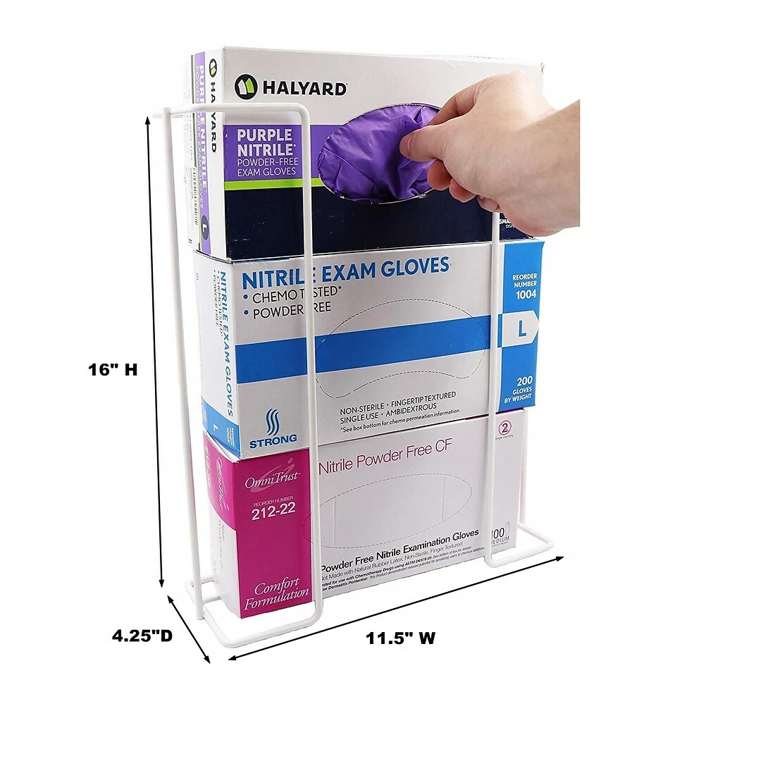 Omnimed wire glove box holders are constructed of heavy gauge steel wire that is powder coated for a durable and easy to clean finish. They are ideal for use in medical, lab and food prep functions or any area where cross contamination is an issue or protective gloves are needed. These glove box holders are simple to load and accommodate one glove box. Each unit comes with mounting hardware and can be mounted vertically or horizontally on a variety of surfaces. All single glove boxes fit this model.