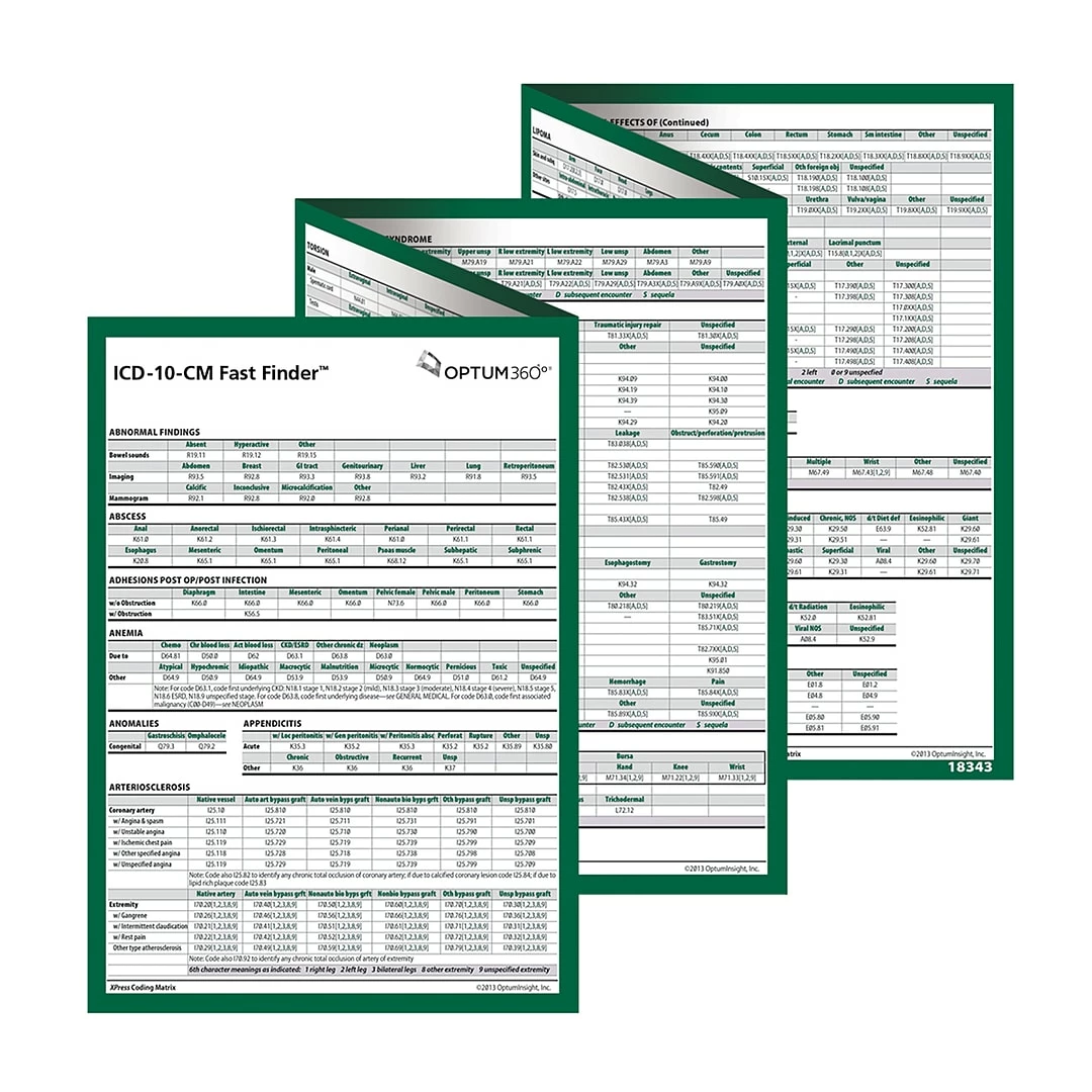 The ICD-10-CM Fast Finders utilize our Optum360 Xpress Coding Matrix with ICD-10-CM codes presented by specialty in an easy-to-use table format that maximizes the number of codes contained in the fast finder and also simplifies code selection. These convenient and reliable coding tools provide complete and valid code selections at your fingertips. Use this coding tool to determine the most specific ICD-10-CM codes for your specialty — codes that accurately identify the patient condition and level of severity as well as support medical necessity.