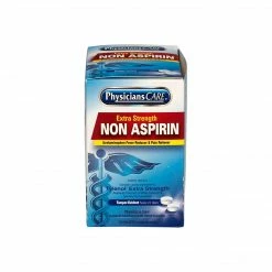 Ease pain and reduce fevers by using Physicians Care non-aspirin pain relief medication. This box of 125 single-use packets is perfect for replenishing office medicine cabinets or first aid kits. The tablets are individually sealed in tamper-evident packets containing two pills, so you can easily bring a dose along in a pocket or purse. Each tablet of Physicians Care non-aspirin pain relief medication contains 500 milligrams of acetaminophen to keep you going.