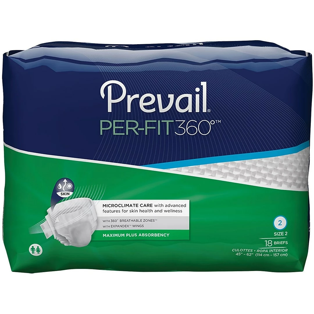 The Prevail Microclimate Care system creates a favorable microclimate by incorporating performance features to help maintain normal skin temperature and moisture at the skin surface, which supports healthy skin. Microclimate Care features includes: 1) 360° Breathable Zones allow air to circulate around the entire brief and help prevent heat and moisture build up, 2) Doublesorb Layers lock up moisture, and 3) QUICK WICK with MaxSoft and a fast absorbing thin core rapidly lock away moisture and odor. Other features include: 1) Expandex Wings offer a contoured fit, 2) Easy-Lock Fastener Strips grip and hold without being sticky, 3) Direct Lock Panels offer an adjustable fit, 4) Odor Guard stops odors before they start, 5) Cloth-Like Outer Fabric is soft and comfortable, and 6) our DriFit system provides a new level of protection and skin comfort to help maintain healthy skin.