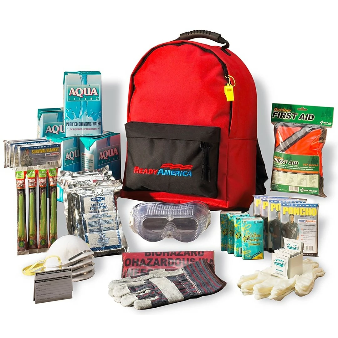 Ready America⢠Grab ‘n Go 3 Day essentials emergency kit includes food bars, 4 person backpack, first aid kit and lot more. Kit allows you to be self reliant for first 72 hours after a disaster.