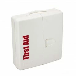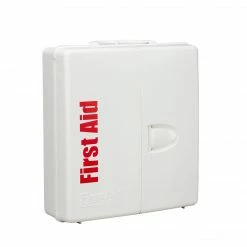 Includes: (1)Patch Plastic Bandage, 1-1/2″x 1-1/2″, 10/box, (1) Fabric Bandage, 1″ x 3″, 25/box, (1) Plastic Bandage, 3/4″ x 3″, 25/box, (1) Fingertip Fabric Bandage, 10/box, (1) Knuckle Fabric Bandage, 10/box, (1) Elastic Bandage Wrap, 2″ x 5yd., 1/box, (1) Butterfly Wound Closure, 10/box, (1) Triangular Sling/Bandage, 40″ x 40″ x 56″, 1/box, (1) Gauze Dressing Pad, 2″ x 2″, 10 pads, (1) Gauze Dressing Pad, 3″ x 3″, 10 pads, (1) Conforming Gauze Roll, 2″, 1/box(1) Conforming Gauze Roll, 3″, 1/box, (1) Trauma Pad, 5″ x 9″, (1) Alcohol Cleansing Pad, 20/box, (2) BZK antiseptic towelettes, 10/box, (1) Castile Soap Towelettes, 10/box, (1) First Aid/Burn Cream, 10/box, (1) Antibiotic Ointment, 10/box, (1) First Aid Tape, 1/2″ x 10yd., 1/box, (1) Scissors, (1) Moleskin (blister prevention), 2″, 10/box, (1) First Aid Guide, (1) Exam-Quality Vinyl Gloves, 4/box, (1) Stainless Steel Tweezers, (1) CPR Face Shield and Vinyl Gloves Set