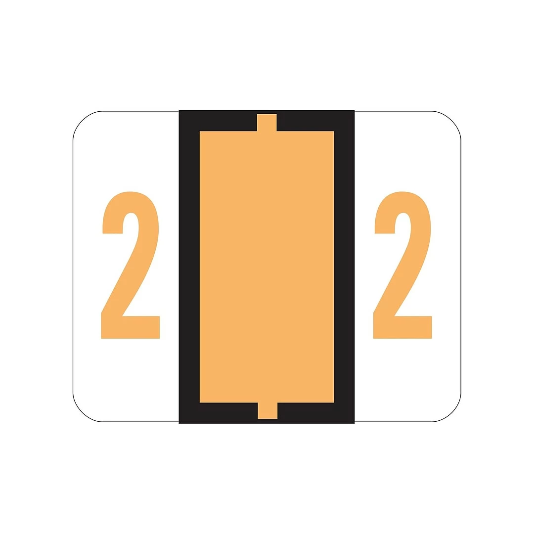 Categorize your filing system with these #2 labels. Featuring a convenient dispensing box, these labels are easy to peel off and apply as you need them. These Smead BCCRN bar-style numeric labels come with 500 units in each pack and are light orange, making them easy to color-code for a range of filing tasks that require quick identification.