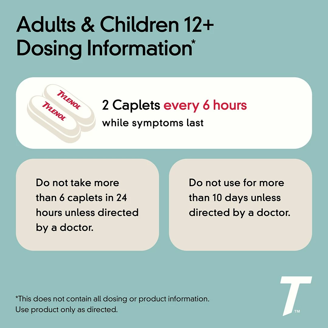 | Active Ingredient : Acetaminophen | Aspirin & Pain Reliever Type : Caplet | Brand : Tylenol | Customizable : No |