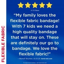Band-Aid Brand Flexible Fabric Adhesive Sterile Bandages provide comfort, protection & coverage of minor wounds for up to 24 hours. Made with Memory Weave fabric for additional comfort while you heal.